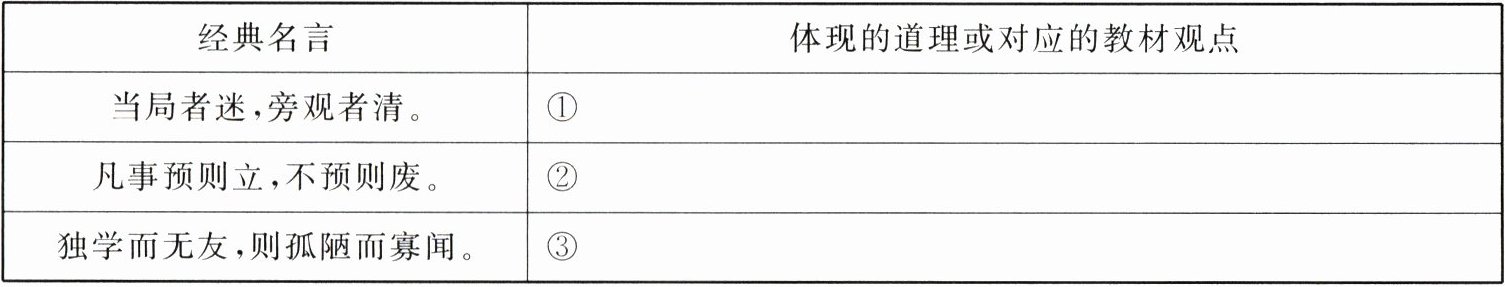 (1)联系所学知识,简要写出这些名言所蕴含的观点。(2 分)