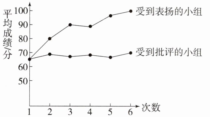 解析:选 C。本题考查要正确对待老师的表扬和批评。由图可知,受表扬组学生的平均成绩随着天数呈上升趋势,受批评组学生的平均成绩随着天数呈下降趋势,启示我们要正确对待老师的表扬和批评,故 C 正确、A 错误;图中为两组学生的平均成绩,并不能准确描述受表扬或批评的每一个学生的成绩变化,因此不能得出老师的表扬或批评一定会让学生的成绩提高或者下降的结论,故 B、D 错误。故本题选 C。