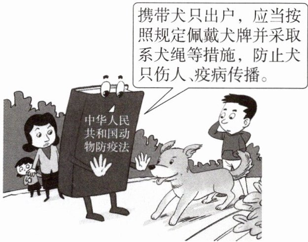 解析:选C。本题考查树立安全意识。遛狗是公民的自由,遛狗拴绳有利于维护他人健康,避免他人有可能受到伤害,遛狗拴绳是树立安全意识的表现,故C说法错误;题文中《中华人民共和国动物防疫法》中的相关规定,表明动物防疫与人类紧密相关;遛狗系犬绳要求树立规则意识,依法文明养犬;遛狗拴绳入法有利于保障公共卫生安全和人体健康,故A、B、D说法正确。本题是逆向选择题,故选C。