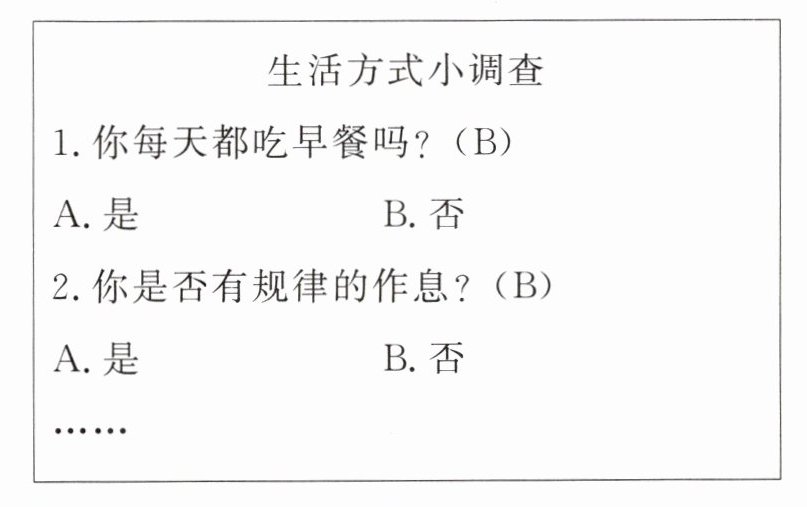 6. 以下是小伟在“生活方式小调查”问卷中的回答。