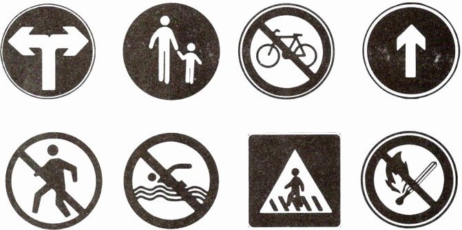 例1 在道路交叉口等公共场所,我们经常会看到各种警示图标,如下图所示: