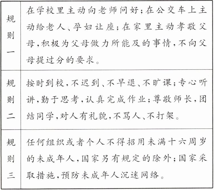 (1)规则一属于道德;规则二属于纪律;规则三属于法律。