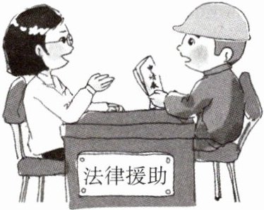 解析:选 D。本题考查依法维权。漫画主要启示我们,公民可以通过法律援助中心来维护合法权益,D 正确。题干信息与诉讼无关,A 排除;公民应该到人民法院提起诉讼,B 错误;受到非法侵害,我们可以到法律援助中心寻求法律援助,但不能到法律援助中心控告、举报,C 错误。故本题选 D。