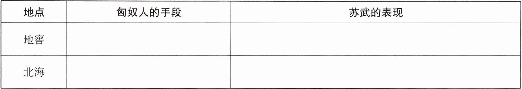 5. 匈奴人是怎样折磨苏武的?苏武的表现又是怎样的?根据短文内容,完成表格。