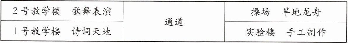 1. 在学校端午文化节活动中,小丁想去观看歌舞表演,他应该去