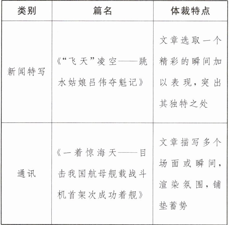 8. 下面是小语同学对语文教材新闻单元相关文章的梳理。你认为选文可以归为新闻体裁的哪一类型?请根据选文内容简述理由。(4 分)