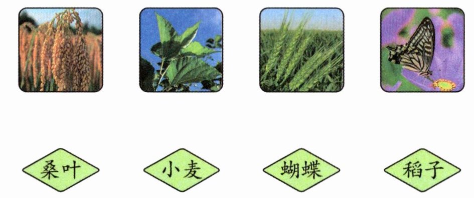 (假设从左到右图片顺序依次对应稻子、桑叶、小麦、蝴蝶)