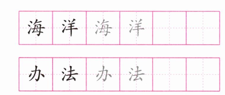 2. 农民伯伯把改良的稻种( )精心种( )在试验田里,期盼着丰收。