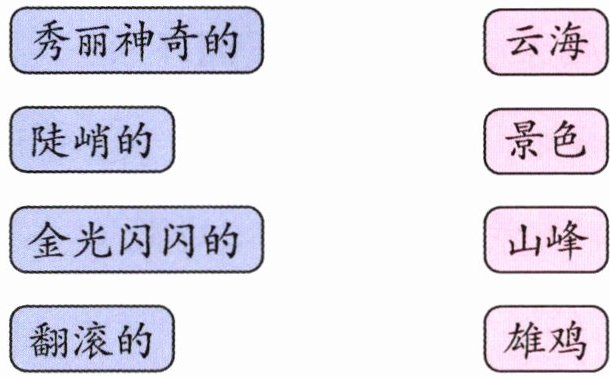 【解析】:本题主要考查对课文《黄山奇石》内容的回顾与理解,包括奇石的数量、名称,词语意思的猜测以及词语搭配。