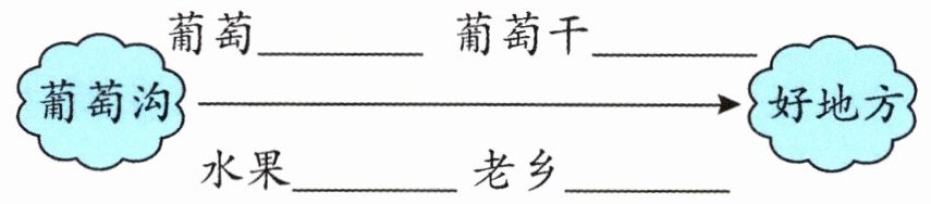 葡萄沟→葡萄______ 葡萄干______ 水果______ 老乡______→好地方