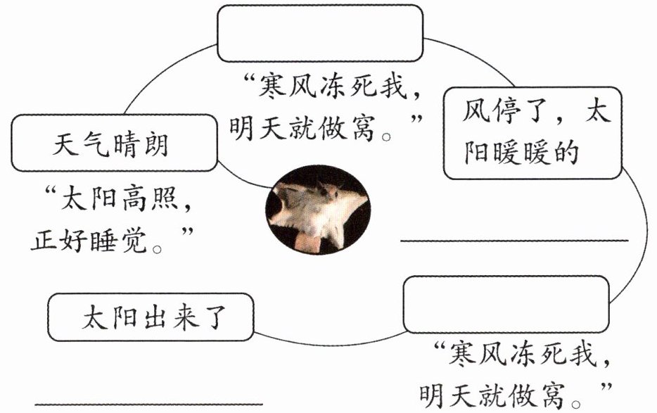 3. 天气的变化影响了寒号鸟的想法。我能照样子填一填。