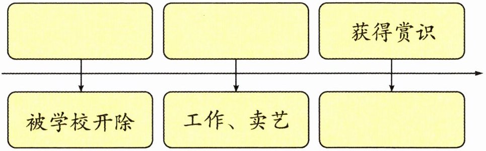 被学校开除 → 工作、卖艺 → □