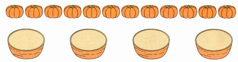 (2)12 个南瓜,平均放在 4 个筐里,每筐放()个。
