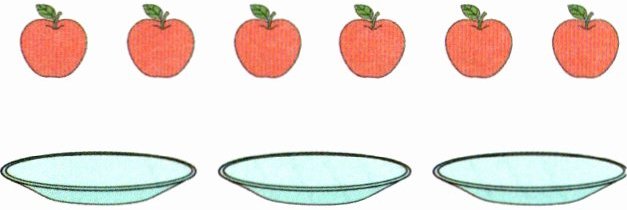(1)6 个苹果,平均放在 3 个盘里,每盘放()个。