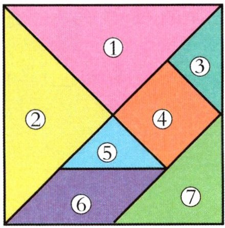 (4)七巧板中,()号板和()号板三角形大小相等,()号板和()号板三角形大小相等。