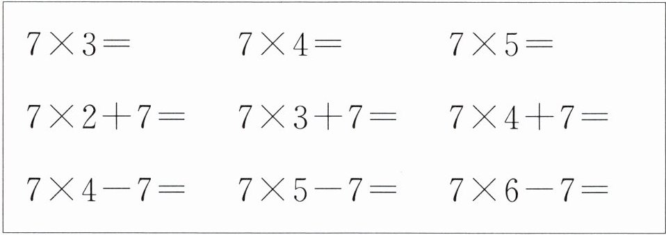 7乘几等于7乘(几减1)加7,也等于7乘(几加1)减7