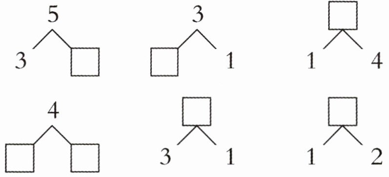 解析:第一个图考查减法运算,用铁锹的总数减去小朋友拿走的数量,得到剩余数量;第二个图考查加法运算,将荷叶上的蜻蜓数量和荷花上的蜻蜓数量相加,得到蜻蜓的总数量。
