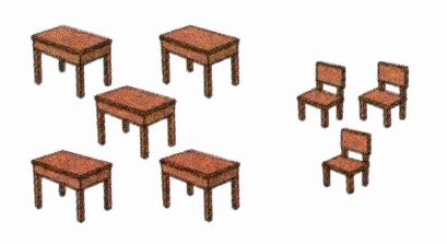 7 1张桌子和1把椅子组成1套课桌椅,要组成5套课桌椅,还差几把椅子?