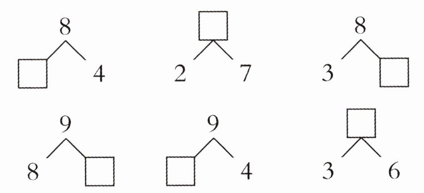 解析:本题主要考查10以内数的分与合。需要观察每个式子中已给出的数字,通过思考哪些数相加或相减能得到给定数字,从而确定方框里应填的数。