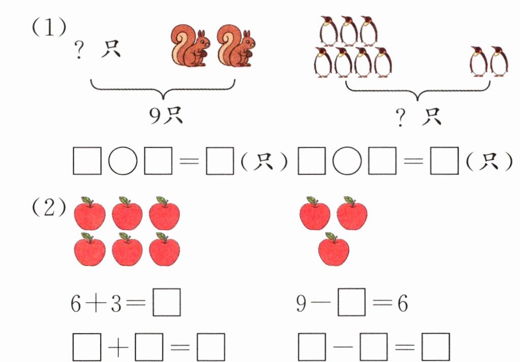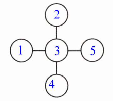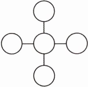 把1、2、3、4、5这五个数填入○里,使每条线上的三个数加起来都等于9。