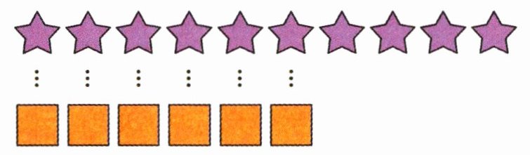 星星比方块多的个数为:$10 - 6 = 4$(个)。