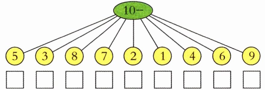 解析:本题可根据减法运算的性质,用$10$依次减去图中所给的数,从而得出结果。