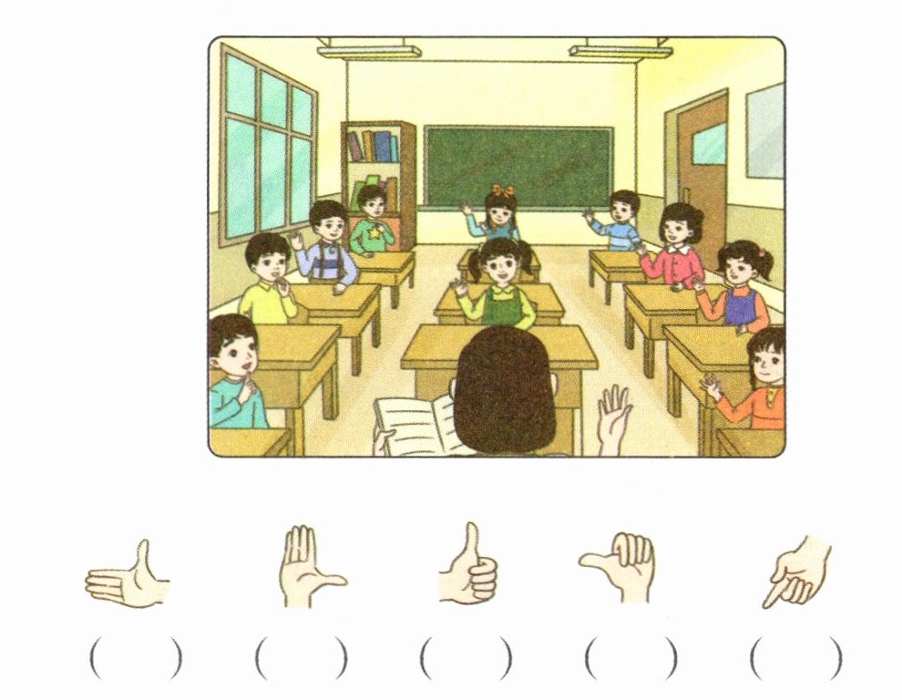 1 举手发言用右手。在右手下面画“√”。