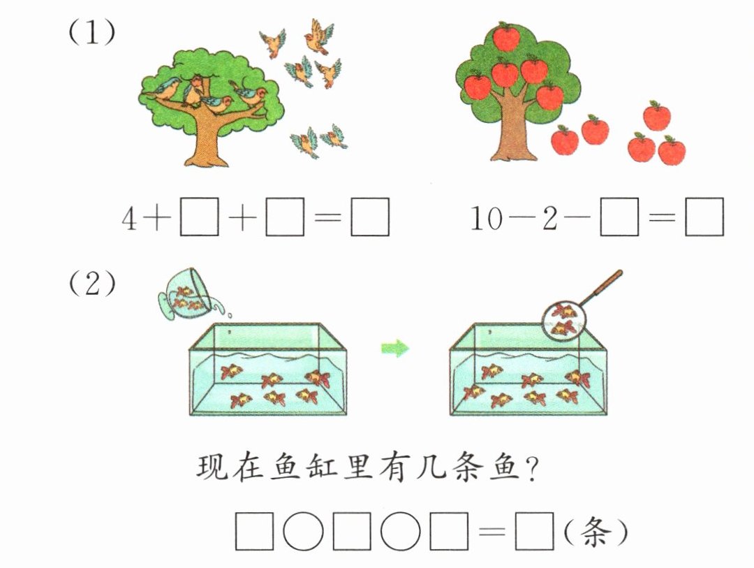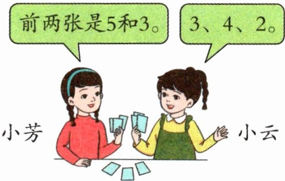 (2)小芳也摸了三张牌,这 3 个数相加的得数是 10。她摸的第三张牌上的数是多少?