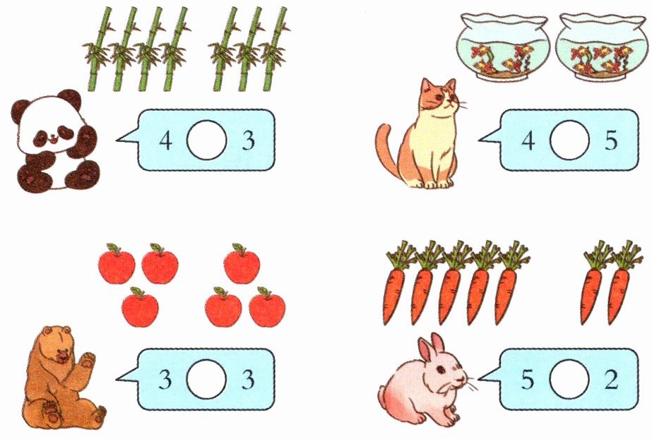 第三组:四个苹果和两个梨,$4>2$。