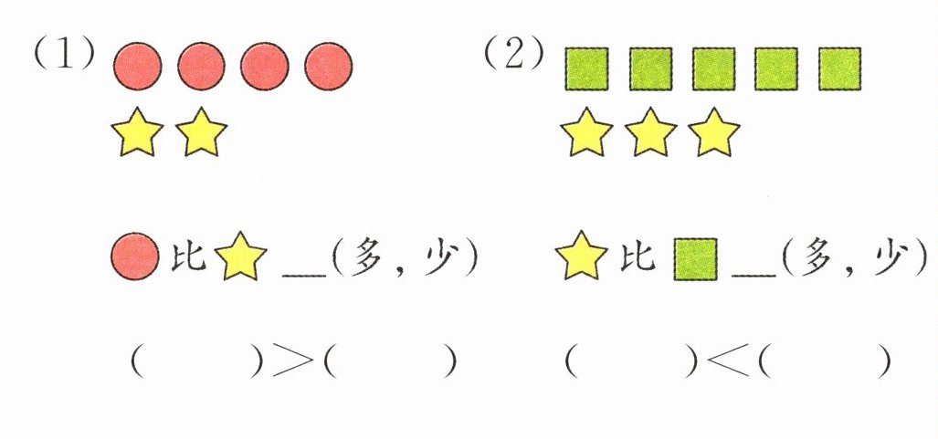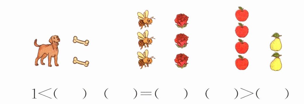 本题可通过观察图片中不同物体的数量,结合数的大小比较来进行填空。