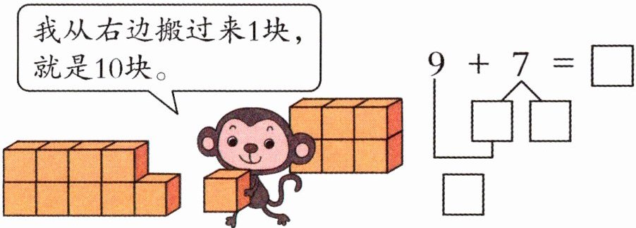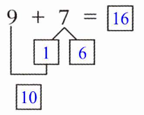 $\begin{cases}10 + 7 = □ \\9 + 1 + 7 = □ \\9 + 8 = □\end{cases} □ $