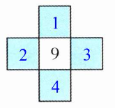 2 把 1、2、3、4 这四个数填进空格里,使横行、竖行的三个数相加都得 14。