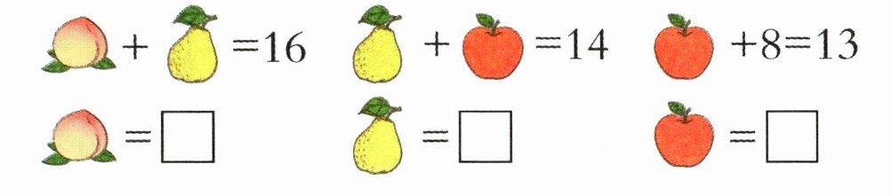 答案:桃子 = 7,梨 = 9,苹果 = 5。