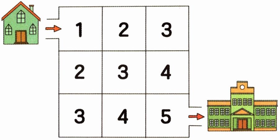 从图中可以看出,从$1$开始,按照从$1$到$5$的顺序,路线只能向右或向下走。