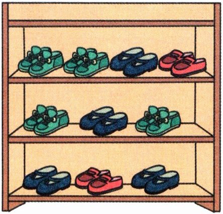第一幅图中,鞋架每层有$3$双鞋,共三层,$3×3 = 9$双,所以圈$9$。