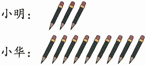 2 下面是小明和小华的铅笔支数,小华给小明几支,两人的铅笔支数就一样多了? 试着移一移,画一画。