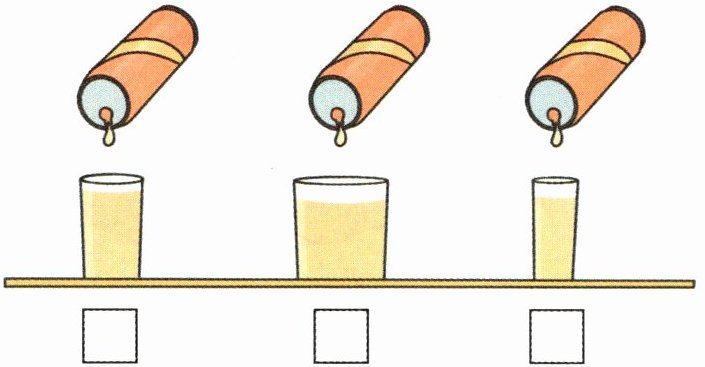 解析:本题考查比较物体容量的大小。通过观察图片可知,第二杯橙汁的高度最高,所以第二杯橙汁最多。