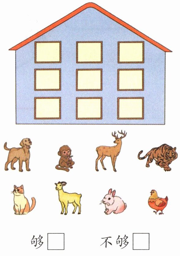 5 每个动物住一间,房间够住吗?(在正确答案后面的$□$里画“$\surd$”)
