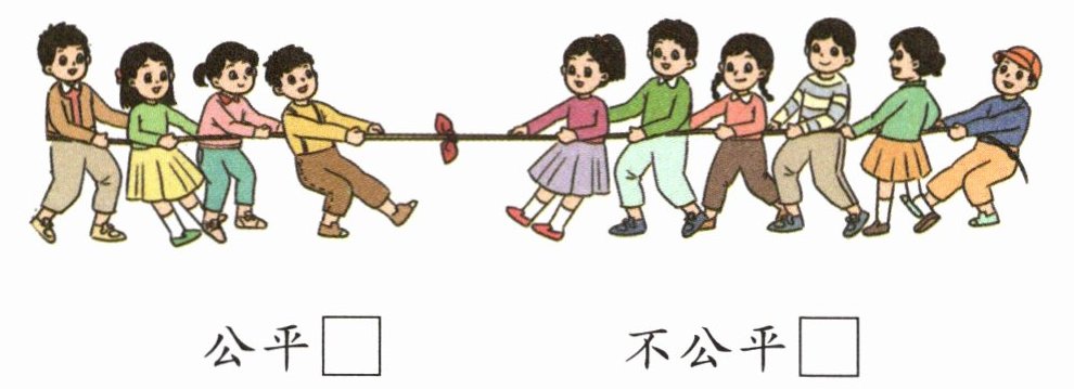 2 拔河比赛开始了!下面的拔河比赛公平吗?选一选,说一说。