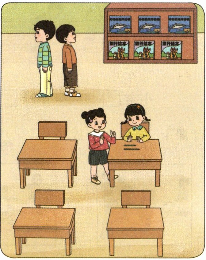 (2) 由图中书架上书籍封面可知,书架上的儿童读物有$3$类。