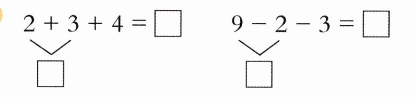 解析:第一个式子,一共有$6$个小朋友,先减去跳完绳走的$2$人,再加上又来的$3$人,就是现在的小朋友人数;