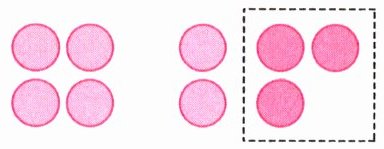 第二个式子,先算出左边$4$个圆圈和中间$5$个圆圈一共有$4 + 5 = 9$个圆圈,再减去圈起来的$3$个圆圈,就是剩下圆圈的个数。