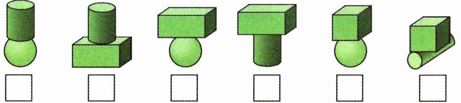2 哪组能放稳?在能放稳的图下画“√”。