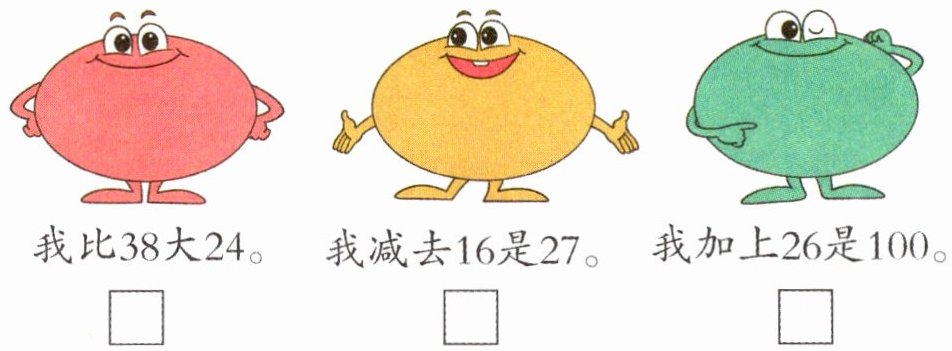 对于第一个图形:已知它比$38$大$24$,求比一个数大几的数是多少,用加法计算,所以这个数是$38 + 24 = 62$。