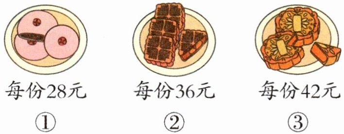 答案:顾客买一份②号月饼比一份①号月饼多花多少元?(答案不唯一)