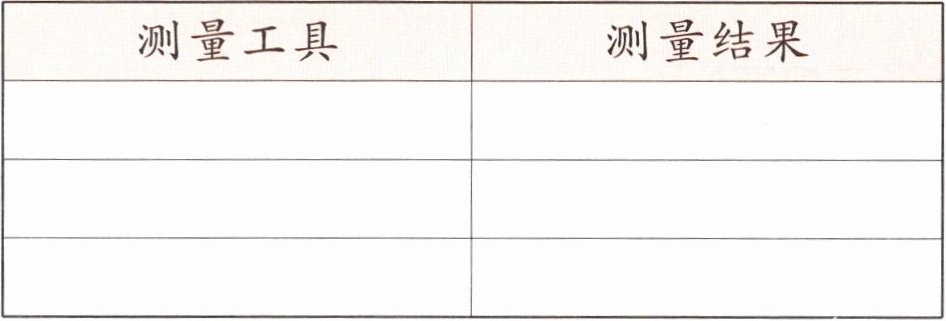 解析:本题考查使用不同工具测量长度及对测量结果的观察分析。测量教室的长可以使用卷尺、步测等方法,不同工具测量结果可能因工具精度、测量方式等因素有所不同。通过实际测量并记录数据,能直观感受到不同测量工具的特点以及测量结果的差异。