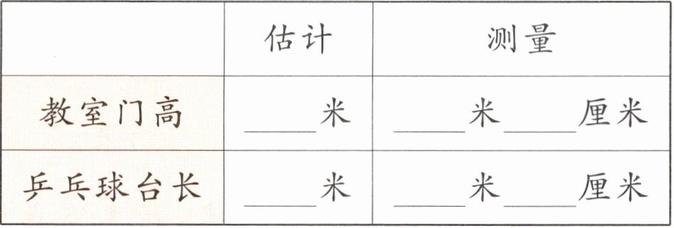 使用卷尺测量乒乓球台的长度,得到:$3.8$米,即$3$米$80$厘米,