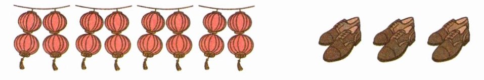 从图中可知,左边有$5$串灯笼,每串有$3$个;右边有$3$双鞋子,每双有$2$只。