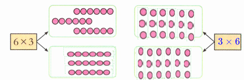 对于鞋子,可列出乘法算式$2×3 = 6$或$3×2 = 6$。