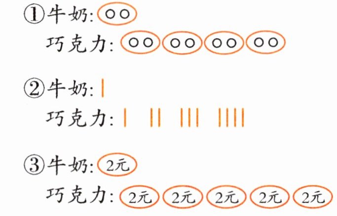 (2)商店举行促销活动,牛奶每盒2元,巧克力每盒的价格是牛奶的4倍。画图正确的是( )。